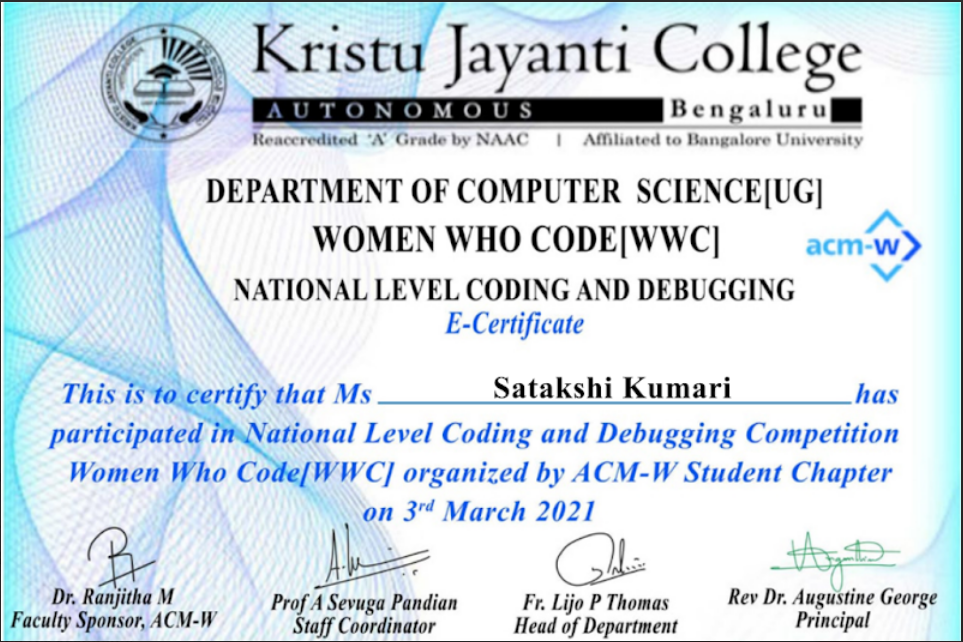 Participant, Women Who Code, National Level Coding Debugging Competition